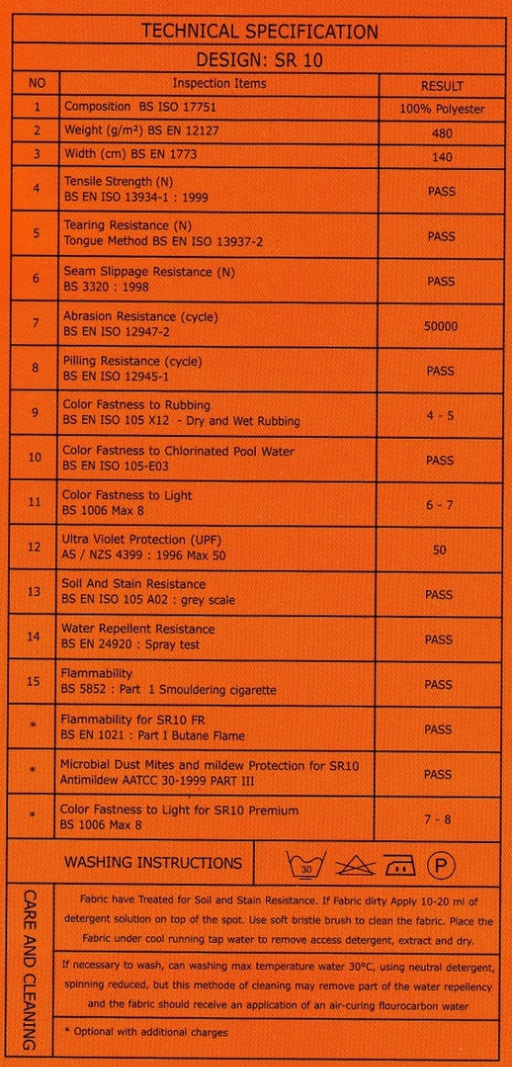 2. Tissu SR10 (Waterproof, UV Protection, Anti taches)